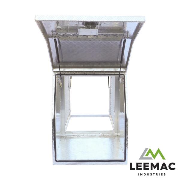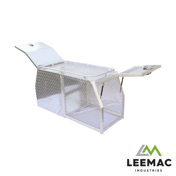 Mesh at one end and checked plate at the other end. Great option if you want a toolbox and a dog box built in together.